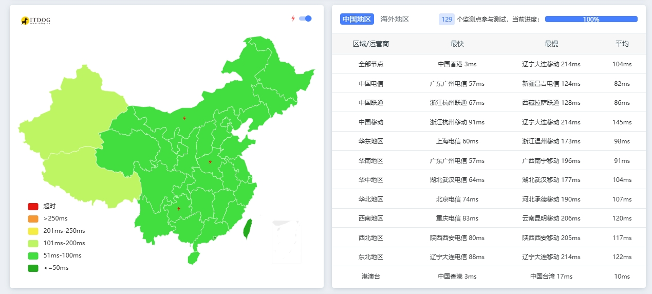 62.06 ms     AS58453    [CMI-INT]          中国, 广东, 广州, cmi.chinamobile.com  移动