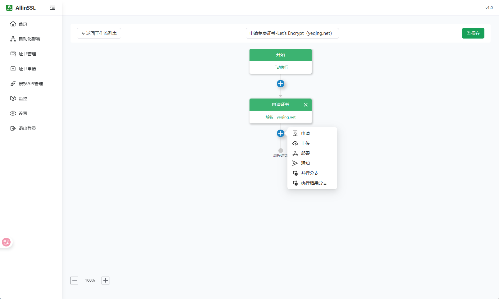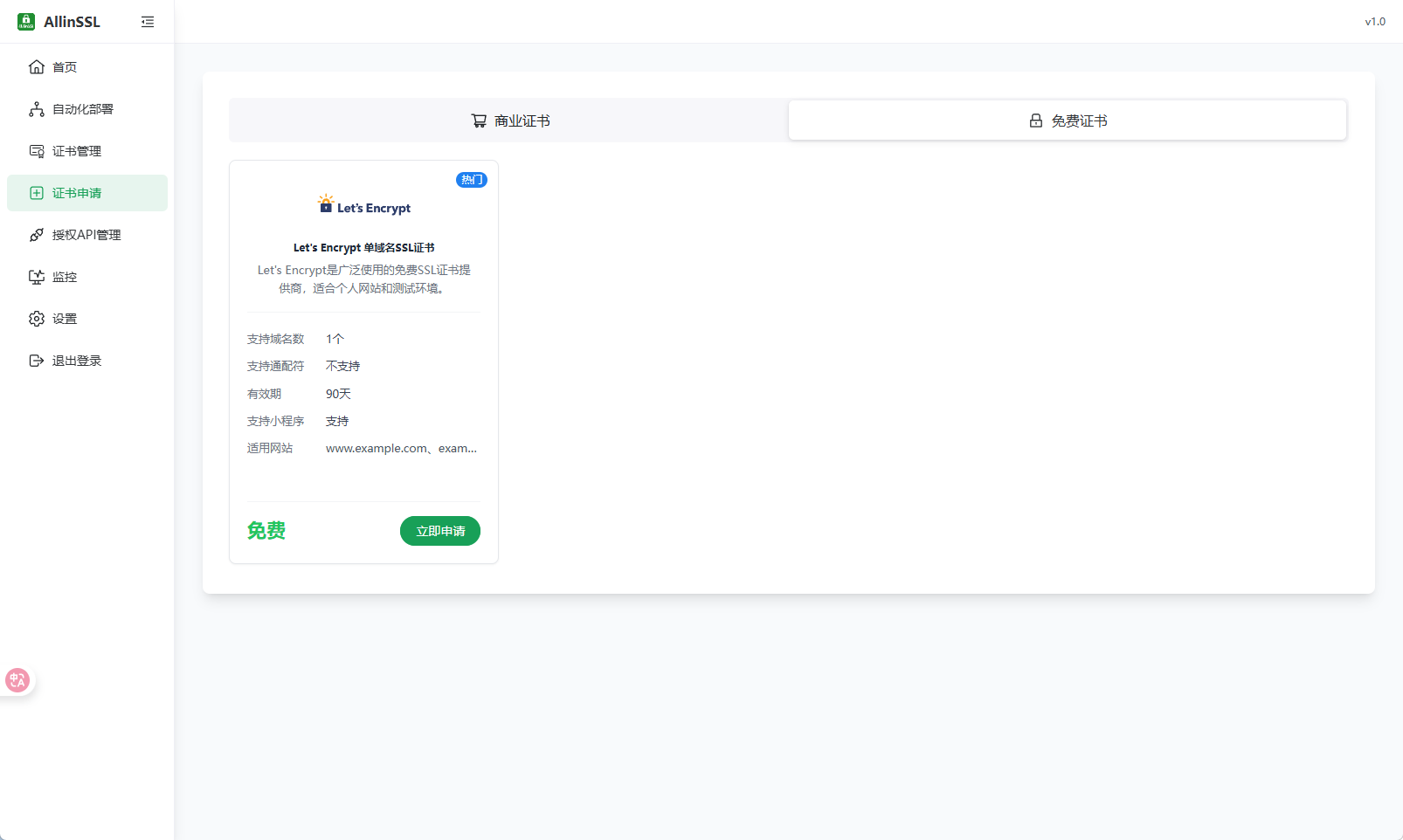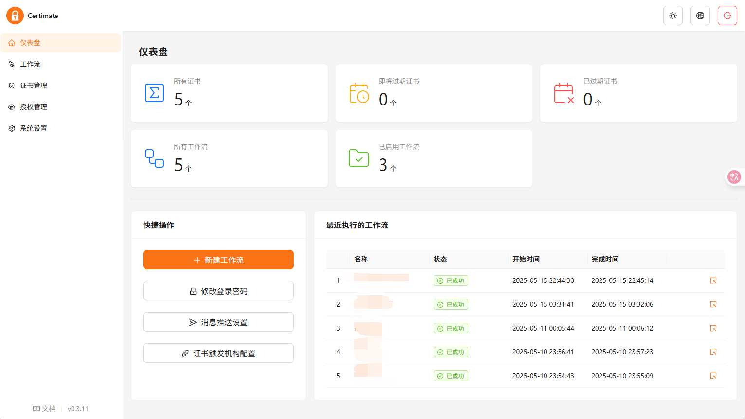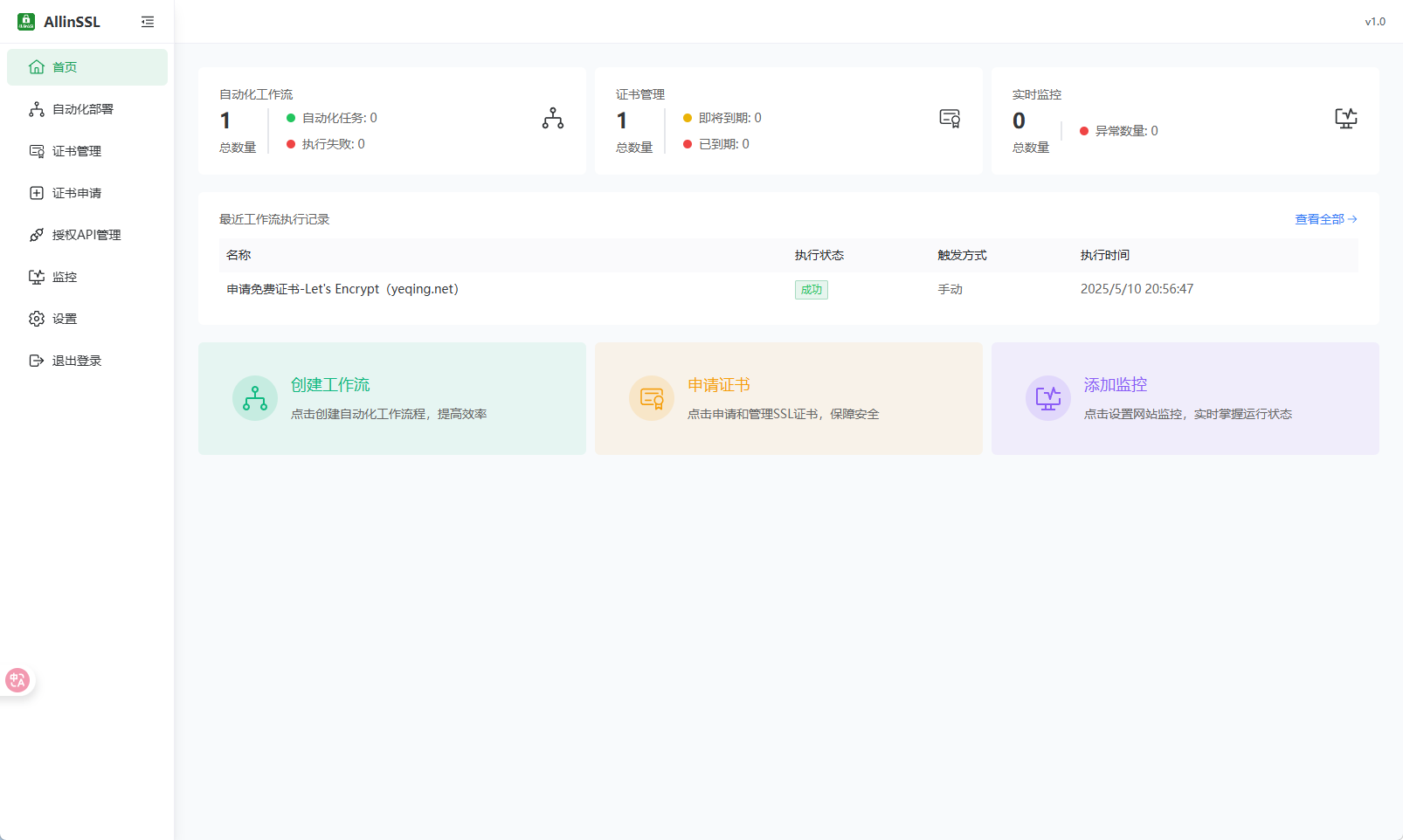 Certimate 上一个开源的 SSL 证书管理工具,可以帮助你自动申请、部署 SSL 证书,并在证书即将过期时自动续期。