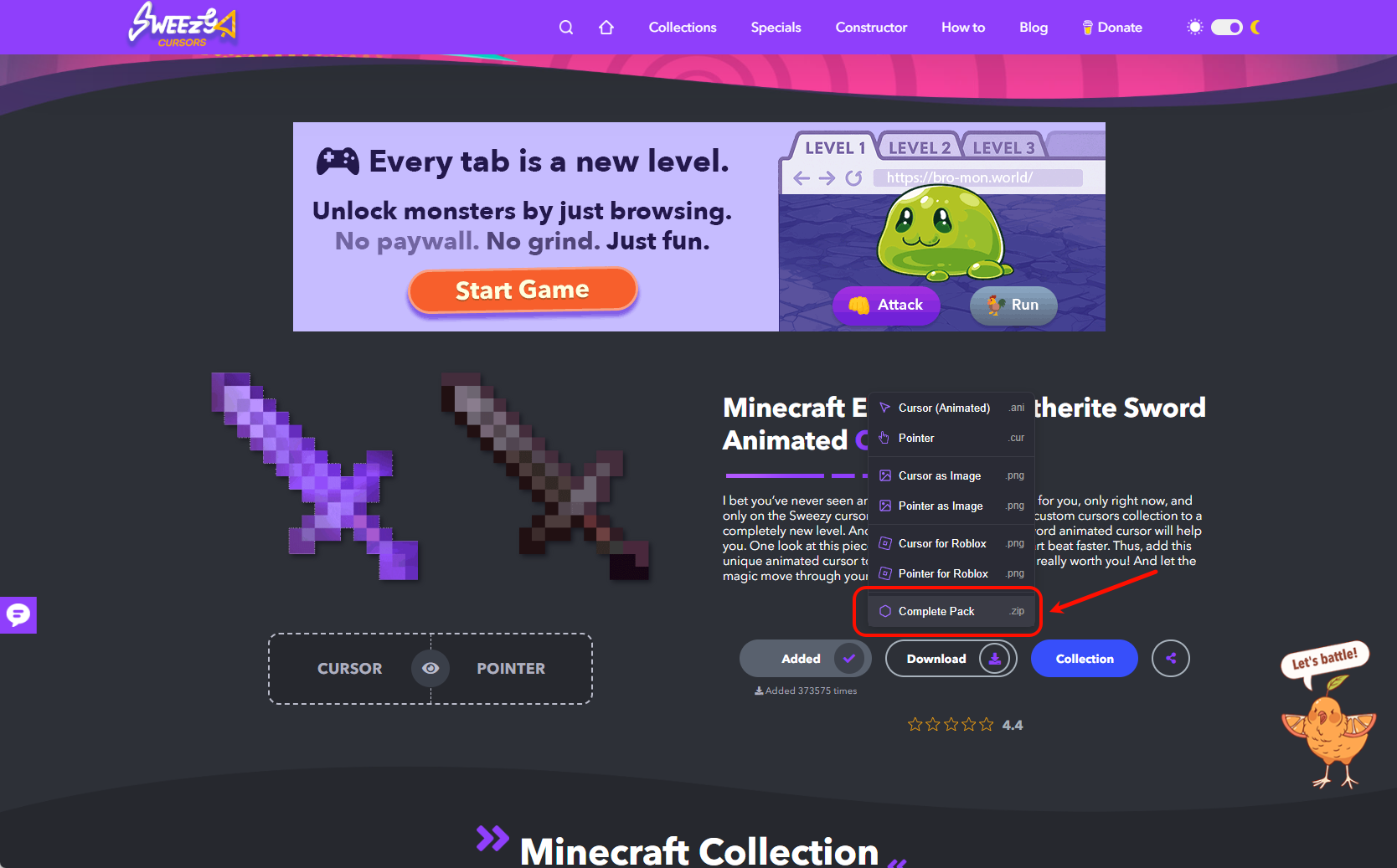 在 Sweezy Cursors 中, 下载 Complete Pack 并解压